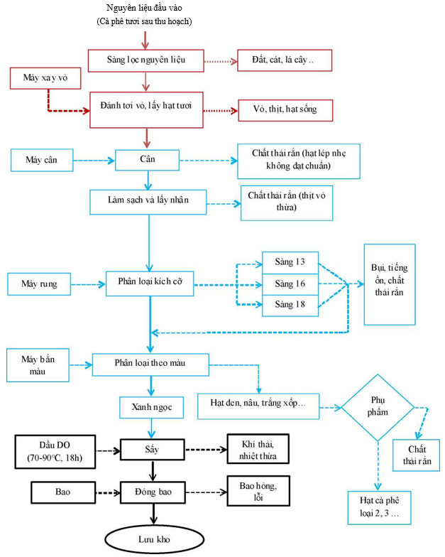 Hồ sơ báo cáo đề xuất cấp giấy phép môi trường nhà máy sản chế biến nông sản. Sản phẩm đầu ra của dự án là cà phê nhân với khối lượng 30.000 tấn sản phẩm/năm.