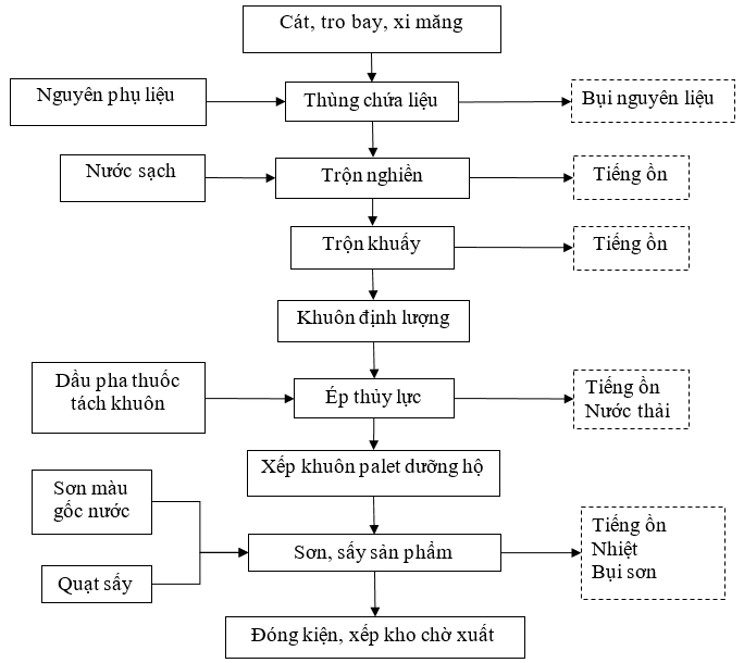 Báo cáo đề xuất cấp giấy phép môi trường (GPMT) nhà máy sản xuất vật liệu xây dựng không nung. Sản xuất các sản phẩm vật liệu xây dựng không nung; xây dựng nhà xưởng công nghiệp và kho bãi ngoài trời cho thuê.