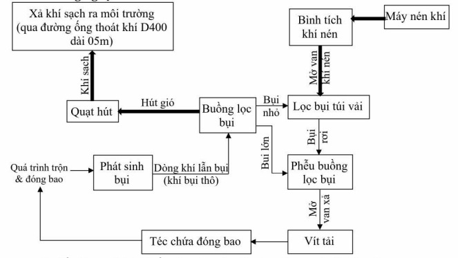 Thuyết minh công nghệ và hướng dần vận hành lọc bụi túi vải - hệ thống đóng bao. Ngăn ngừa phát tán bụi ra môi trường. Kiểm tra theo dõi hoạt động của thiết bị trong quá trình hoạt động